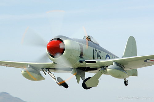 He would rebuild that Centaurus radial on his own. The Centaurus is an 18 cylinder radial engine - 2 rows of 9. The Centaurus has an interesting sleeve valve geometry. The metallurgy of the sleeves would prove to be troublesome for long term use. Getchell was an expert on that engine. He could tell you everything about it, all you needed was a day or so and a real compfy chair. The Centaurus has a very pleasing unique sound. Many Sea Fury owners have decided to fit a Pratt/Whitney radial to the Sea Fury since the parts are much easier to get. Getchell wanted nothing to do with that. You can usually spot the Centaurus powered versions with the beautiful 5-blade propeller up front. The Pratt & Whitney powered models use a 4-bladed prop. Another difference between the two powerplants is that the Centaurus turns the wrong way ;) Getchell flew the Sea Fury, but also the P-51 and AT-6 and had to switch between left rudder on takeoff and climbout in the Sea Fury, vs right rudder on the others.